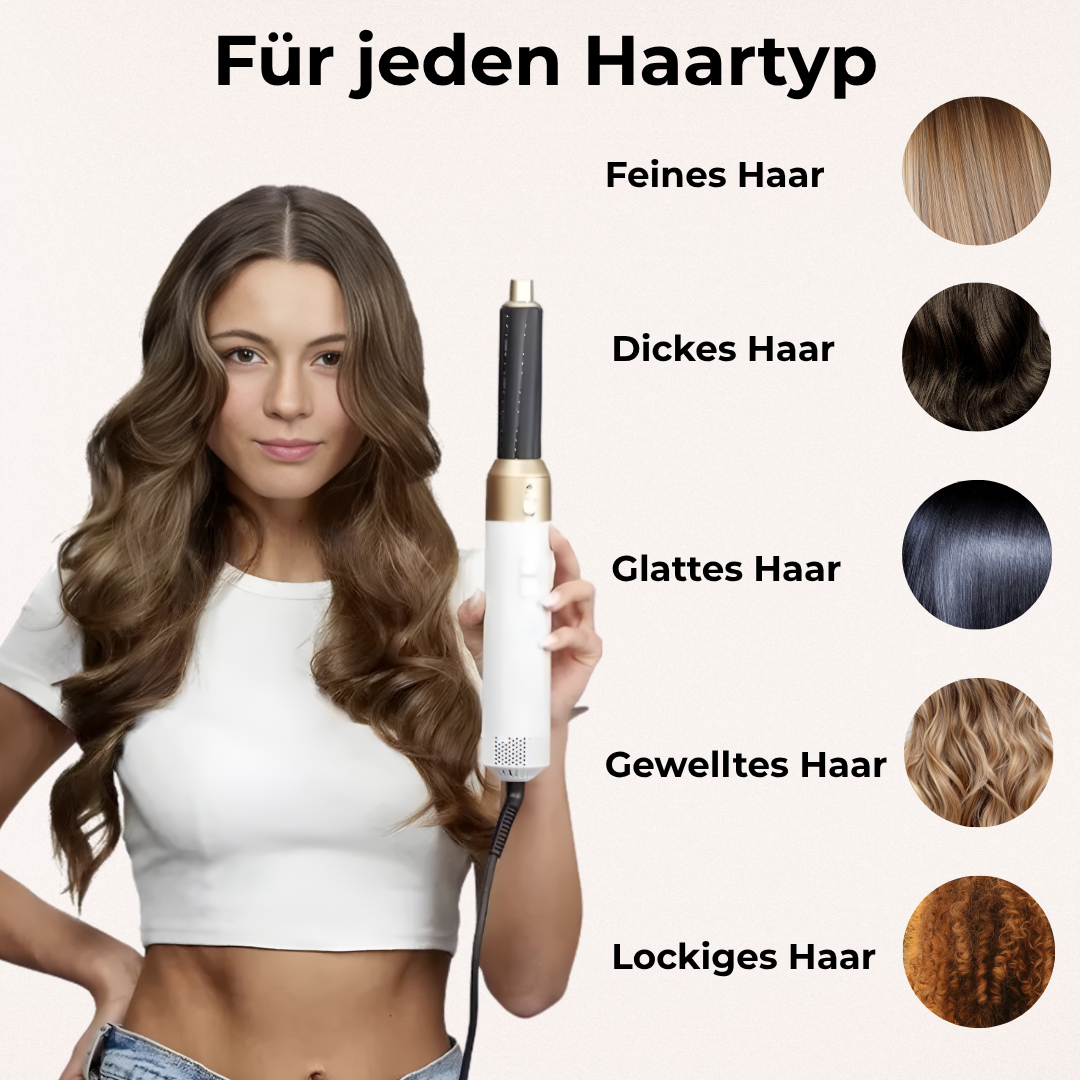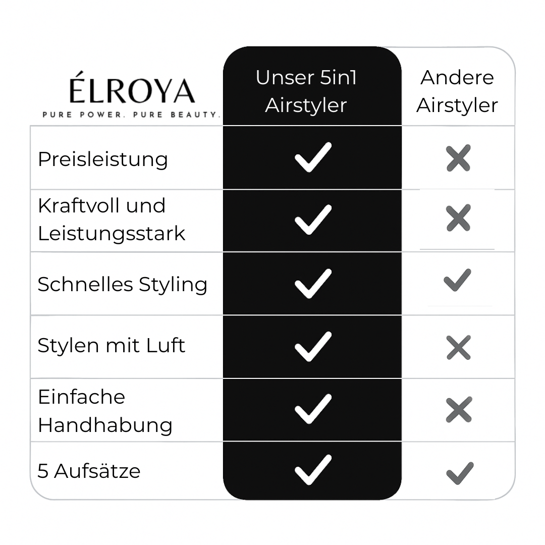 Entdecke mit dem Elroya – 5in1 Airstyler die Zukunft des Stylings ein Multistyler, mit dem du glatt, lockig, volumig & trocken zugleich stylen kannst. Erlebe Haarstyling, das deine Routine revolutioniert: effizient, schonend & professionell.
